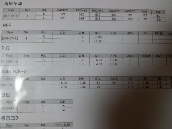 7.12일 검사 이후 라섹 수술을 앞두고 있는데 몇 가지 궁금한 점이 있어서 질문드립니다.