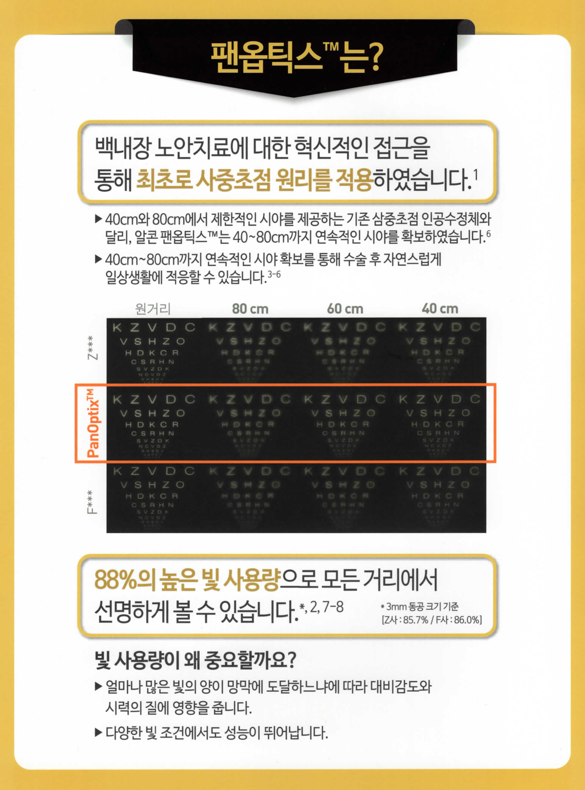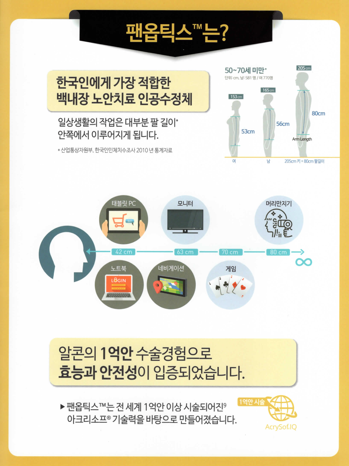 | 추천대상 | · 책 읽은 거리보다, 야외활동 및 TV나 핸드폰 사용을 많이 하는 사람에게 적합한 인공수정체 |