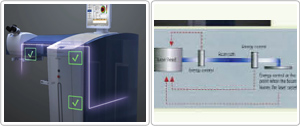 · EX500의 레이저 빔은 레이저헤드에서 생성되어 환자 눈에 조사되기까지 이동경로에 3개의 레이저센서를 거치게됩니다. 이 센서는 항상 레이저 빔의 질을 확인하여 균일한 에너지의 레이저가 환자 눈에 조사되도록 합니다. 안정적이고 균질한 에너지의 레이저 빔은 수술의 결과를 높입니다.